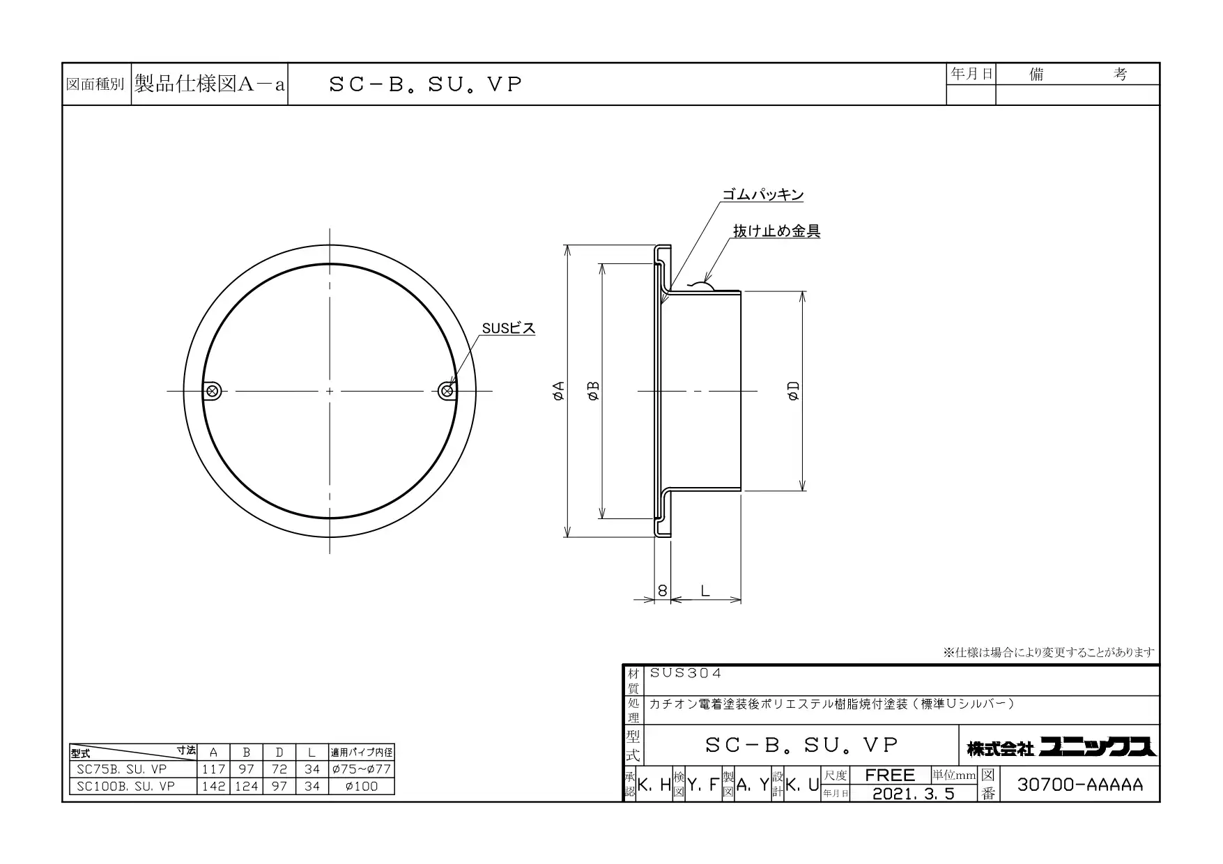 SC100B.SU.VP ステンレス製スリーブキャップ 丸型 SU・VP100φ