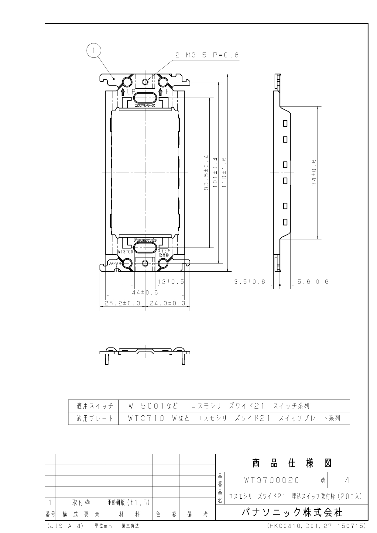 WT3700 コスモシリーズワイド21 埋込スイッチ用取付枠