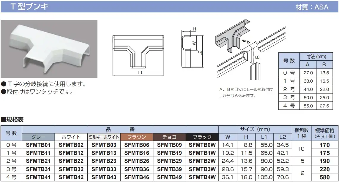 ニュー・エフモール T型ブンキ 0号 ブラウン&● T 字の分岐接続に使用します。
