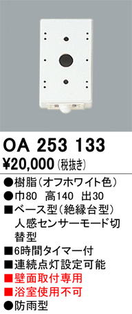 OA253133 屋外用ベース型人感センサー モード切替・壁面取付型 色:オフホワイト