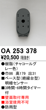 OA253378 屋外用ベース型明暗センサ 壁面取付型 色:チャコールグレー