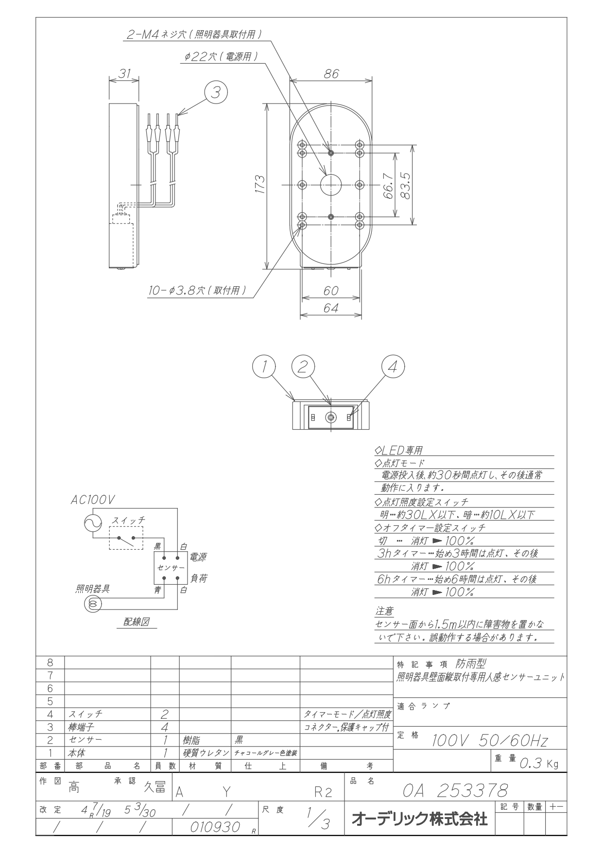 - 照明器具 > オーデリック(ODELIC) > 別売センサー
