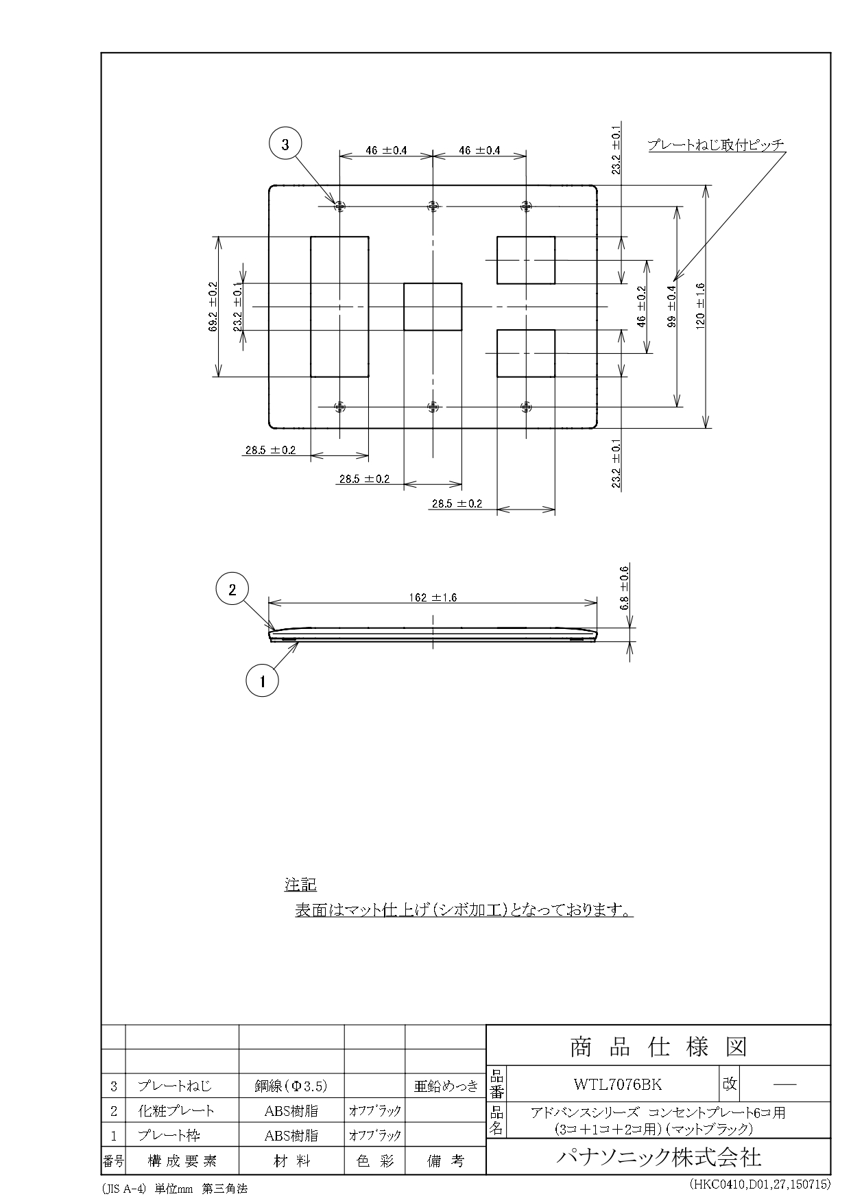 品番:WTL7076BK品名:アドバンスシリーズ コンセントプレート6コ用(3コ+1コ+2コ用)(マットブラック)