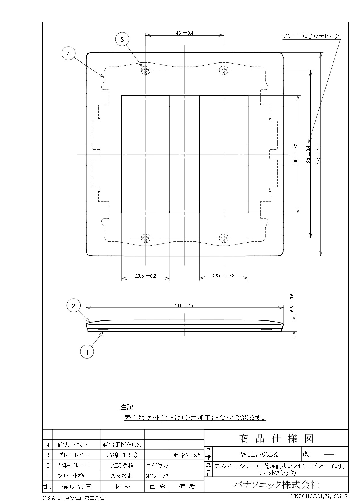 品番:WTL7706BK品名:アドバンスシリーズ 簡易耐火コンセントプレート6コ用(マットブラック)