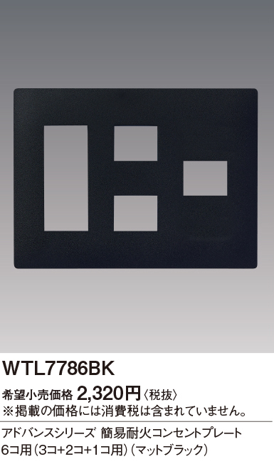 品番:WTL7786BK品名:アドバンスシリーズ 簡易耐火コンセントプレート6コ用(3コ+2コ+1コ用)(マットブラック)