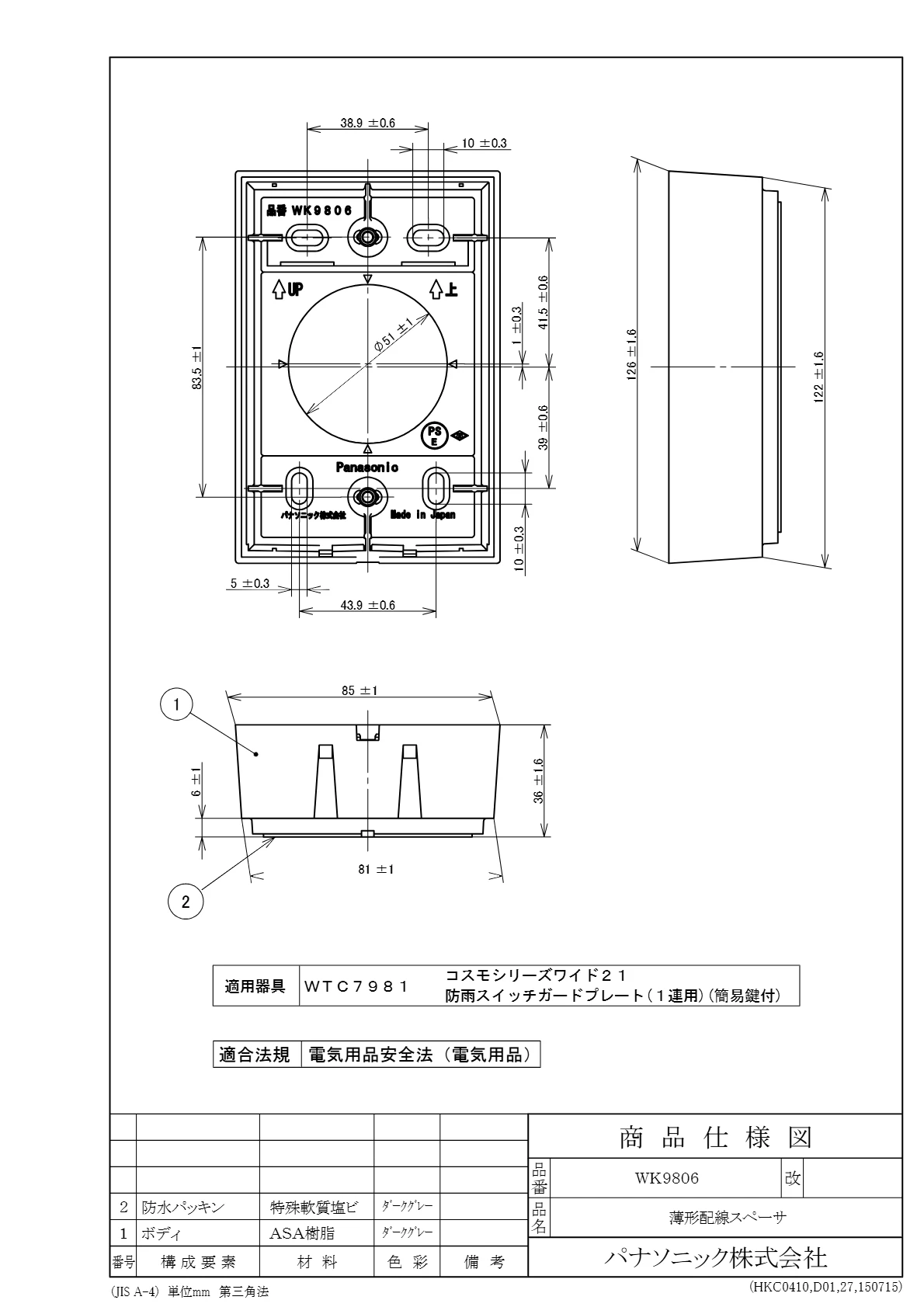 品番:WK9806品名:薄形配線スペーサ