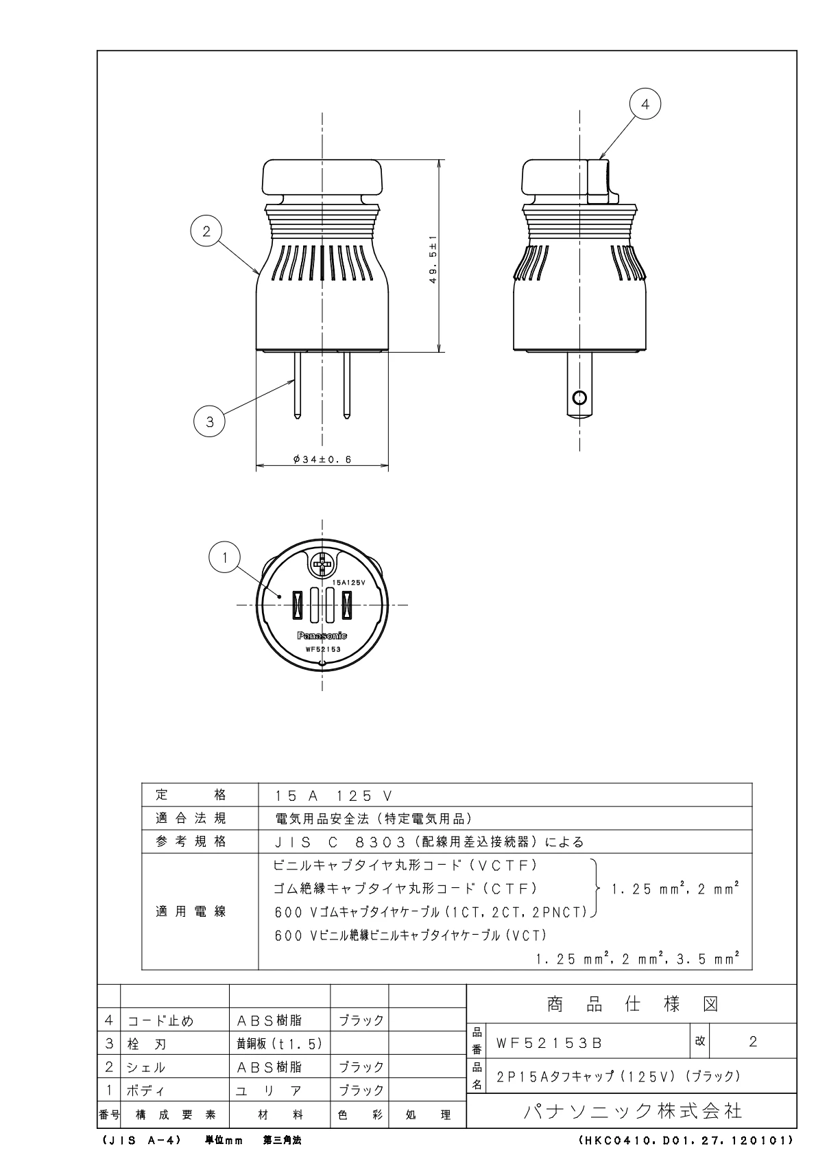 品番:WF52153B品名:タフキャップ 2P15A (ブラック)
