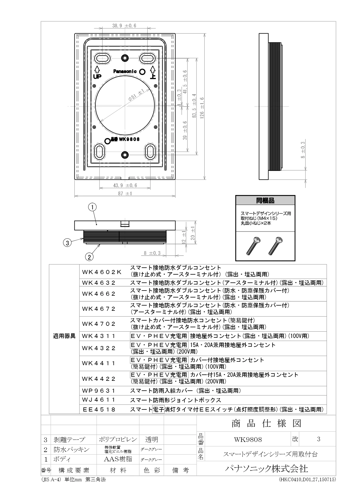 品番:WK9808品名:スマートデザインシリーズ用取付台