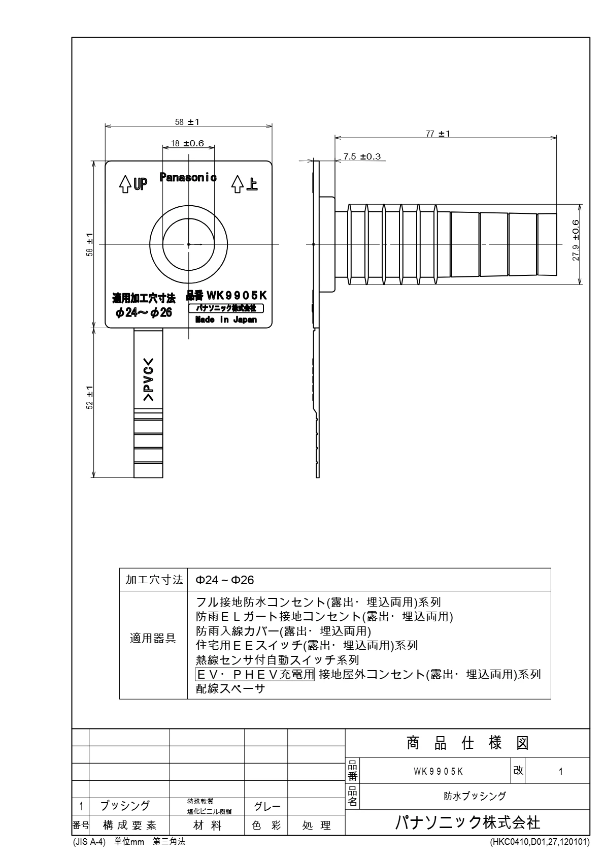 品番:WK9905K品名:防水ブッシング
