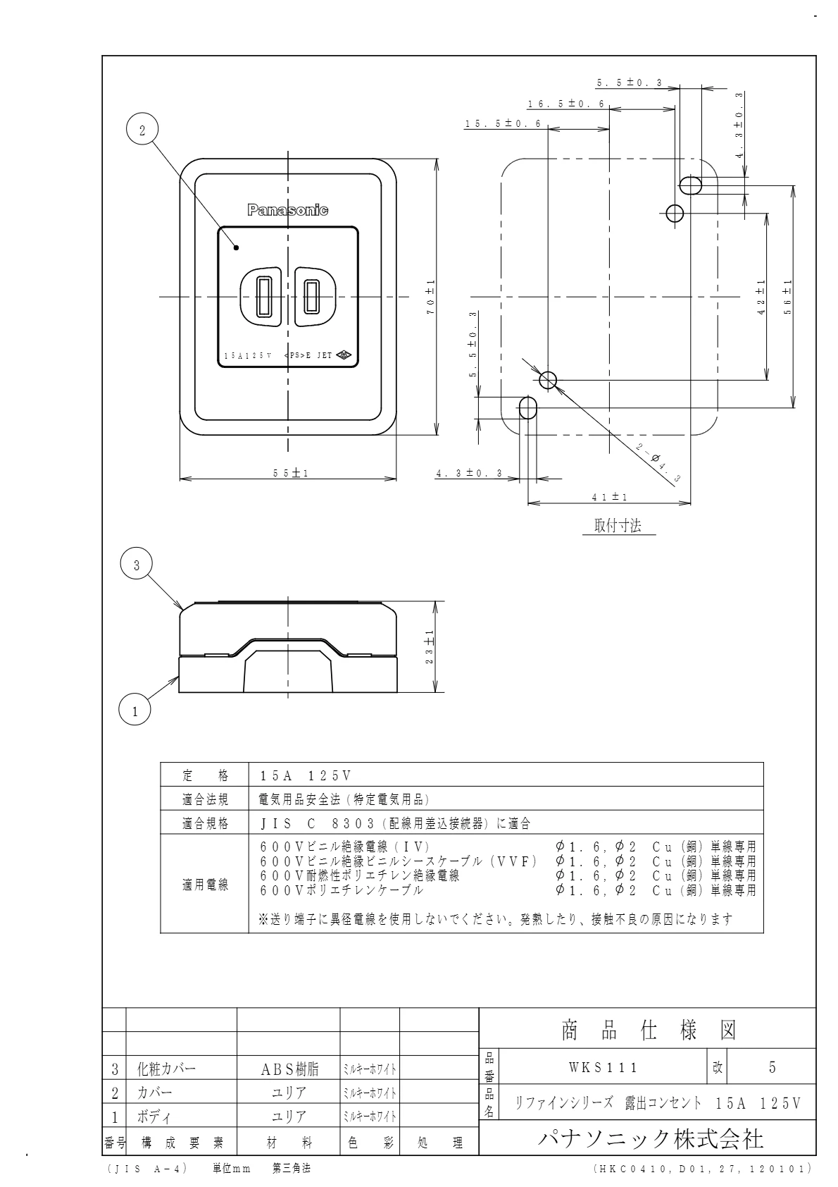 品番:WKS111品名:リファインシリーズ露出コンセント