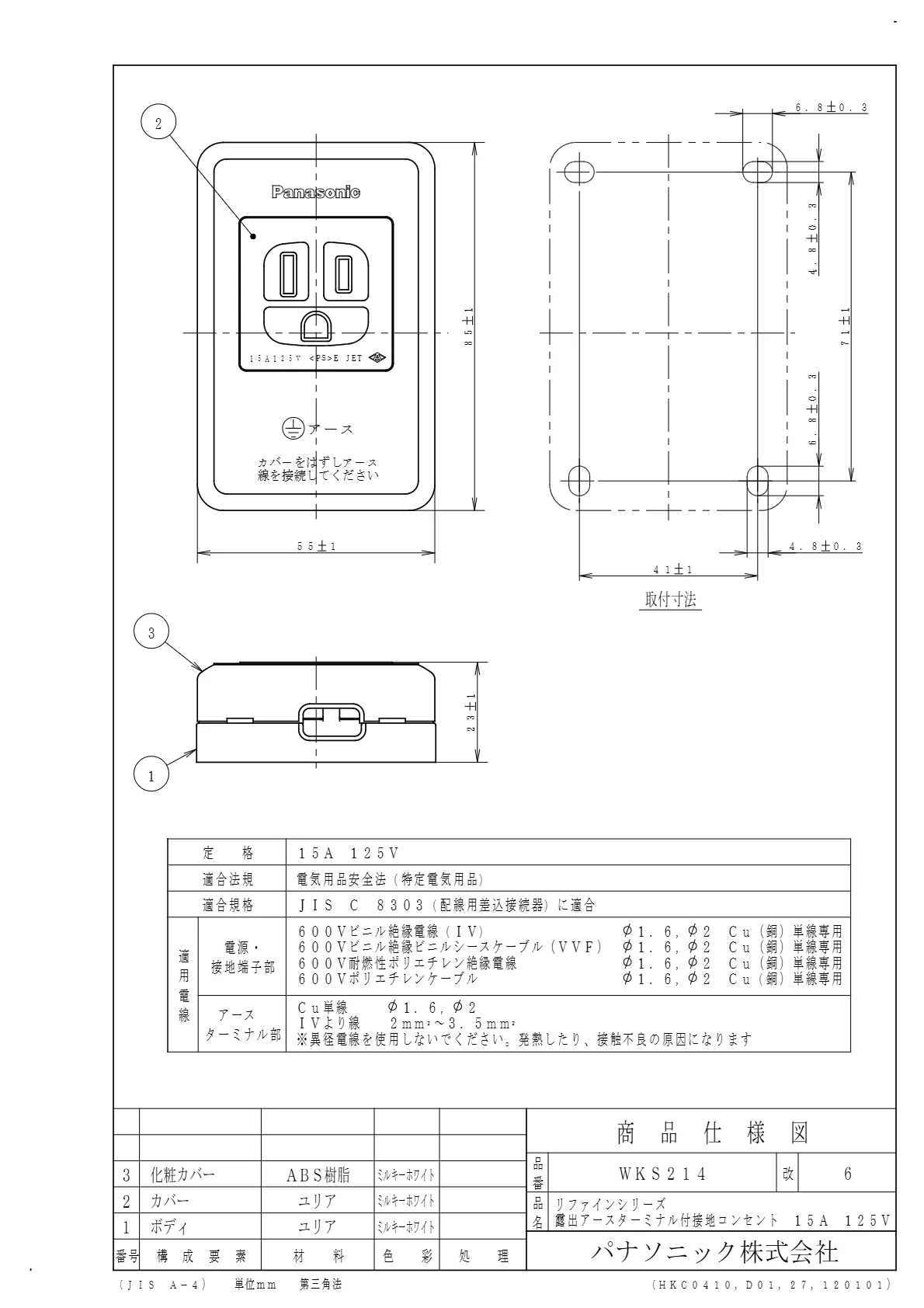 品番:WKS214品名:リファインシリーズ露出アースターミナル付接地コンセント