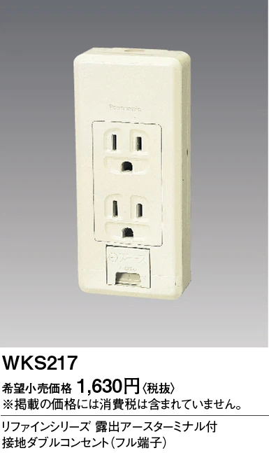 WKS217 リファインシリーズ露出アースターミナル付接地ダブルコンセント(フル端子)