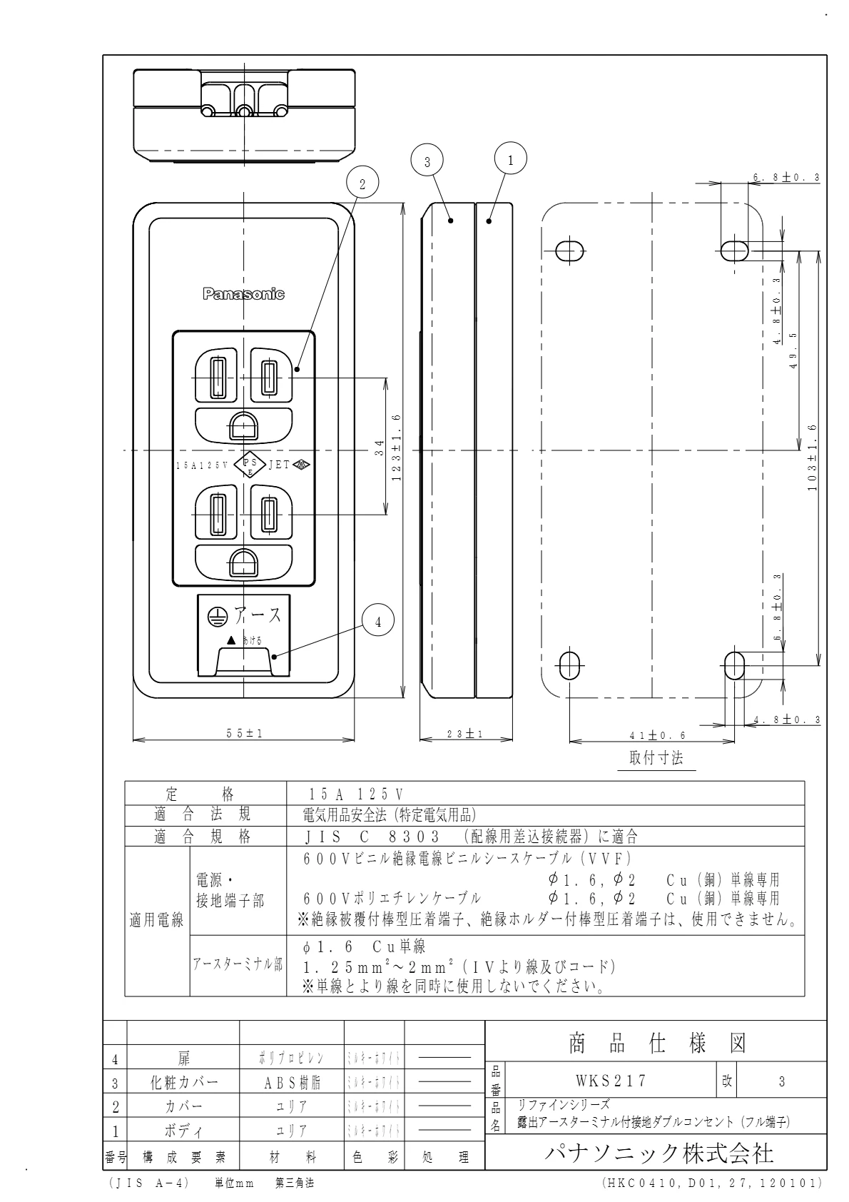 品番:WKS217品名:リファインシリーズ露出アースターミナル付接地ダブルコンセント(フル端子)