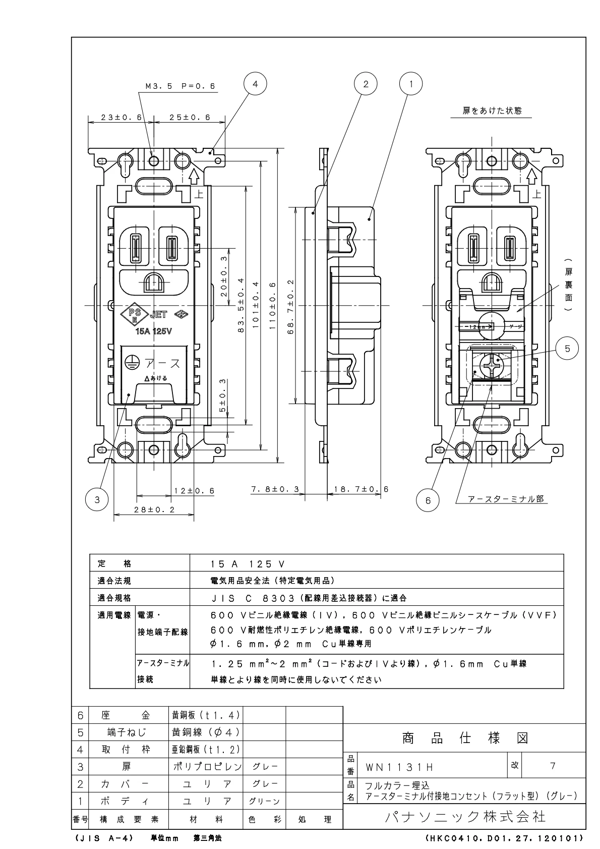 - 電設資材 > パナソニック(Panasonic) > フルカラー配線器具 > コンセント > アースターミナル付
