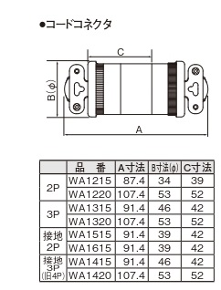 品番:WA1320品名:3P20Aコードコネクタ(コードグリップ付)