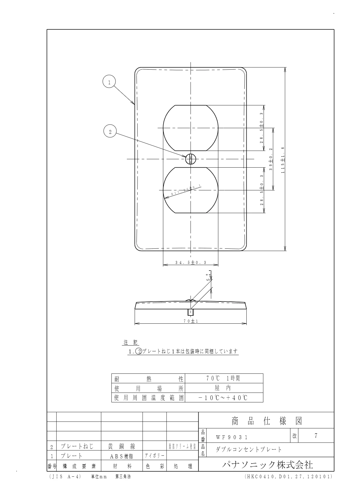 品番:WF9031品名:ダブルコンセントプレート