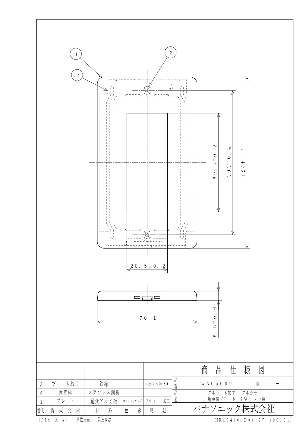 品番:WN65039品名:[フルコート加工]新金属プレート[2型]3コ用