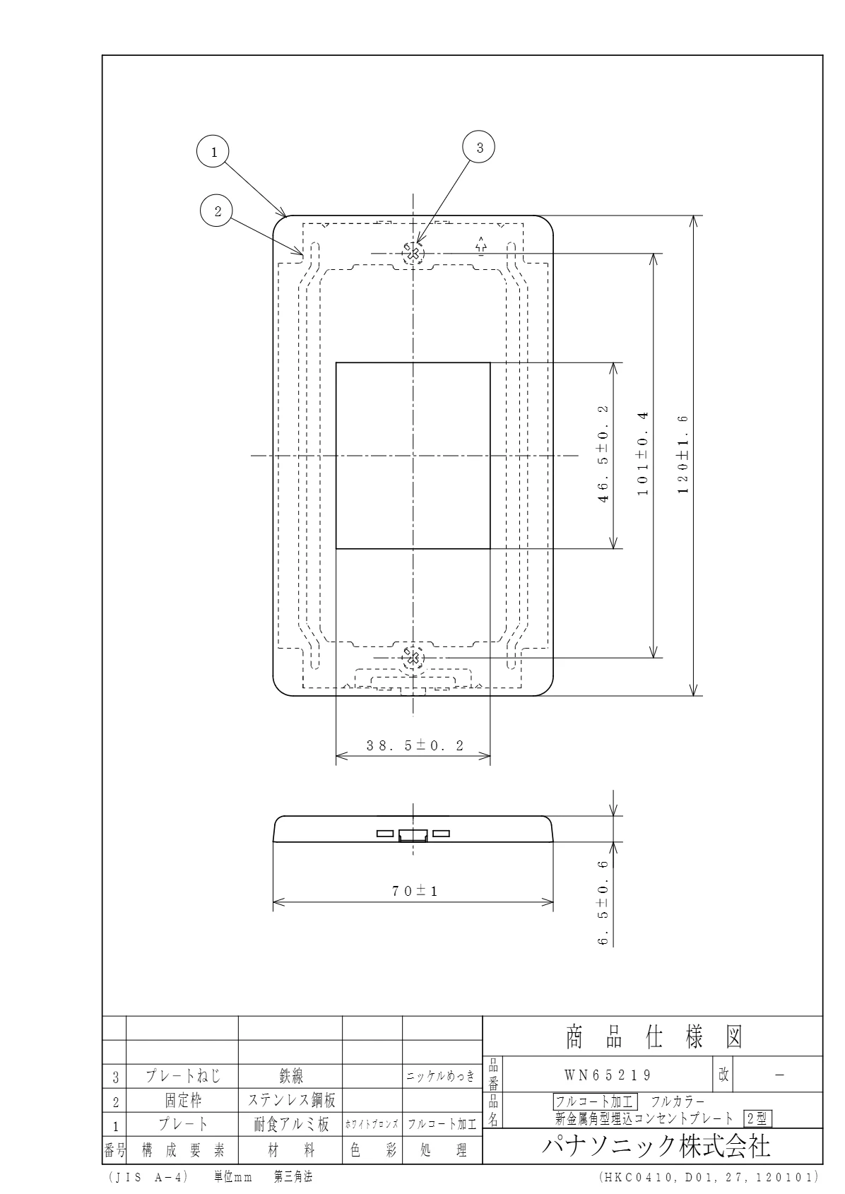 品番:WN65219品名:[フルコート加工]新金属角型埋込コンセントプレート[2型]