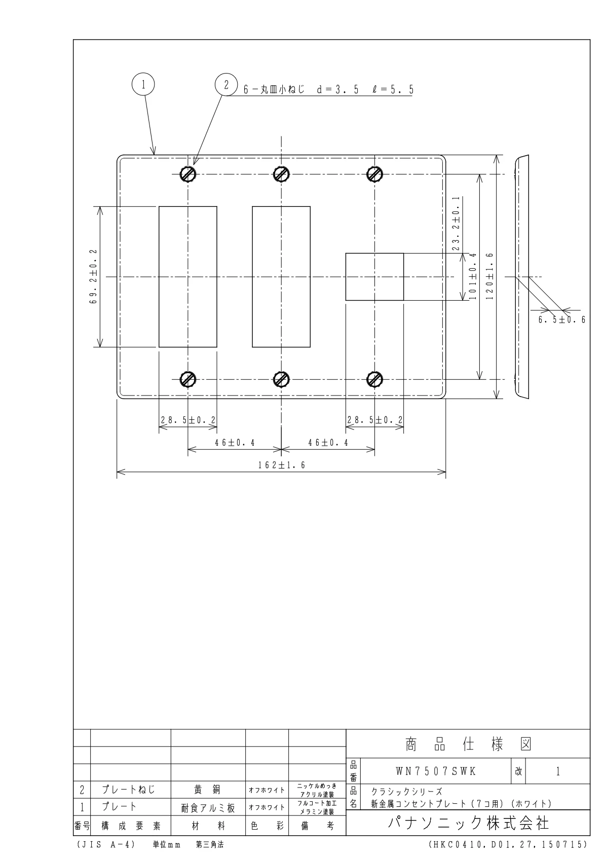 品番:WN7507SWK品名:クラシックシリーズ新金属コンセントプレート(7コ用)(ホワイト)