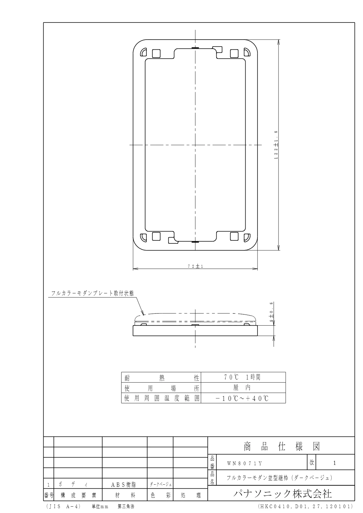 品番:WN8071Y品名:モダン並型継枠(ダークベージュ)