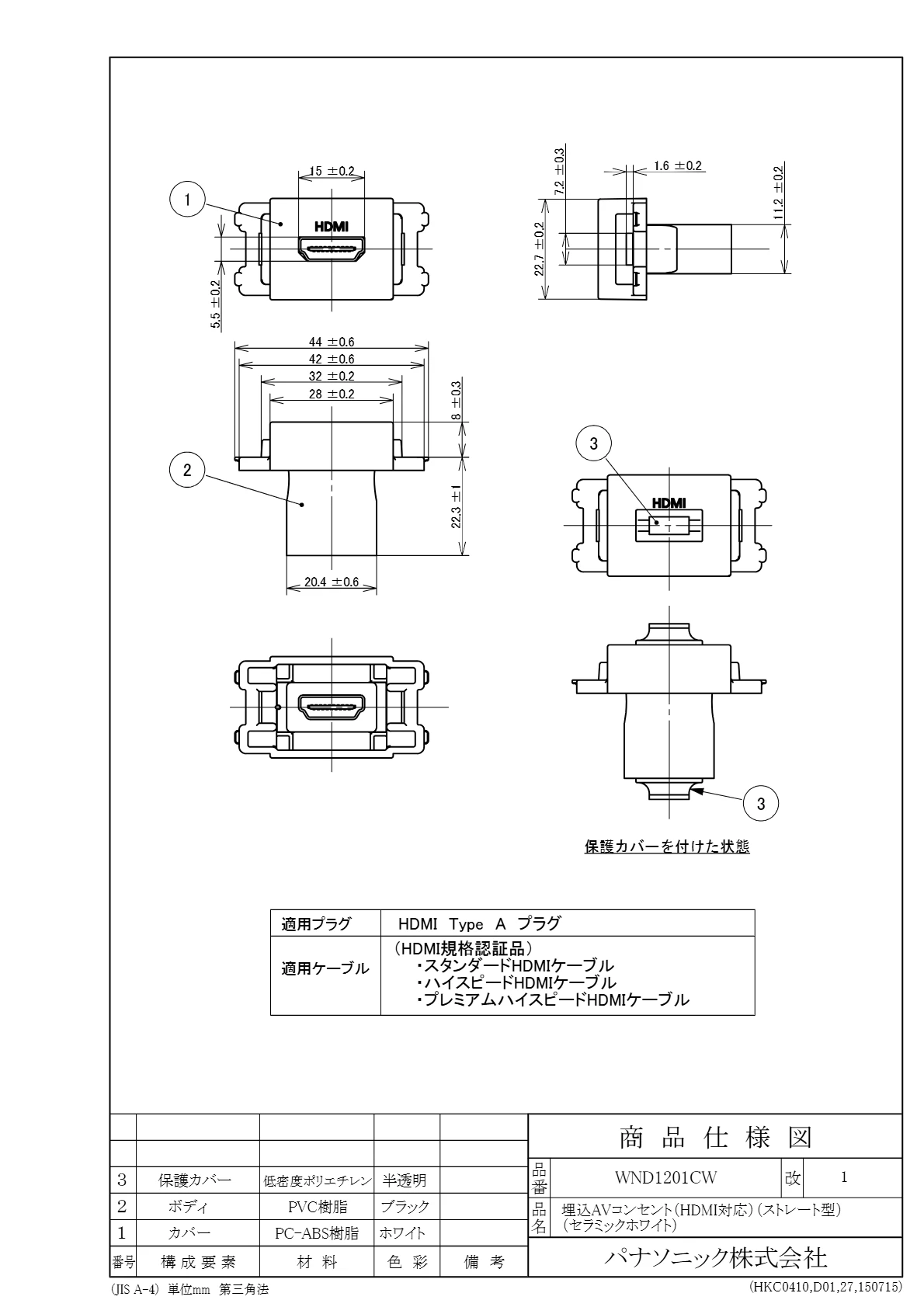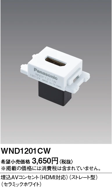 WND1201CW 埋込AVコンセント(HDMI対応)(ストレート型)(セラミックホワイト)