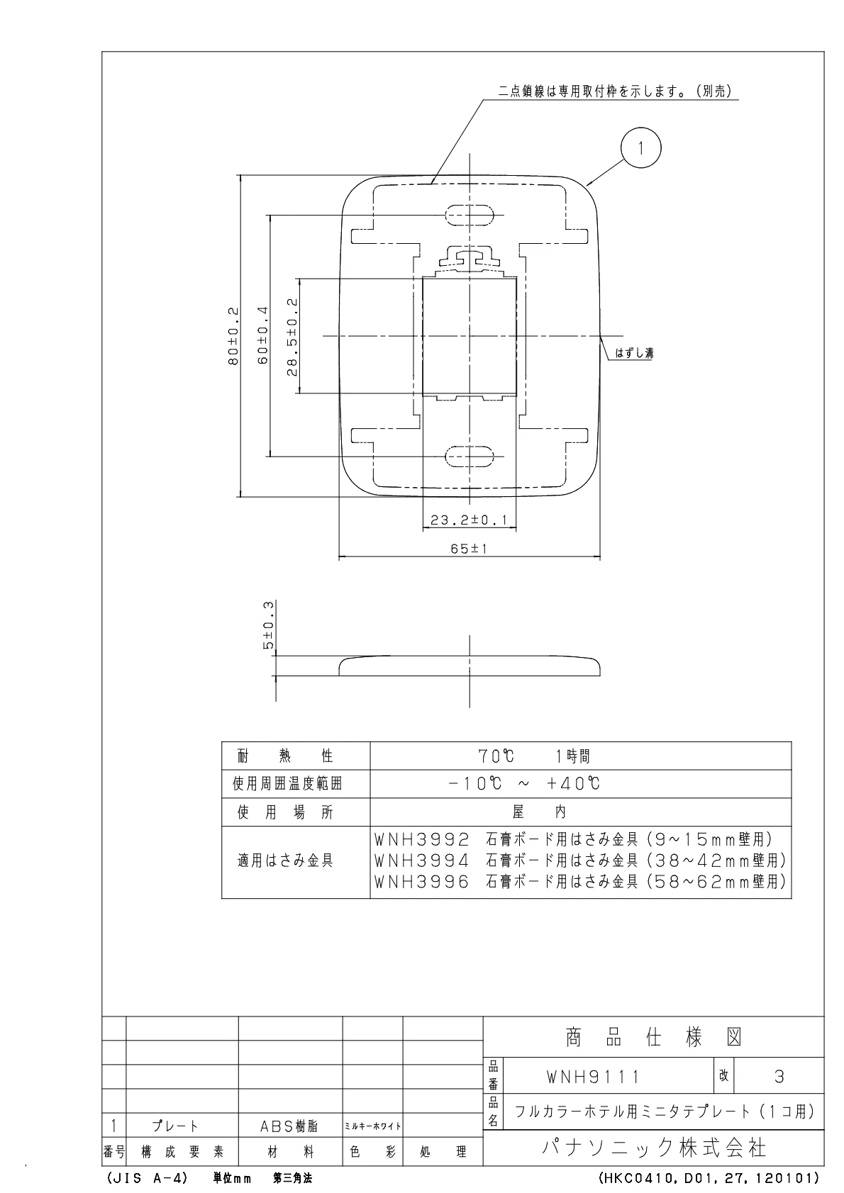 WNH9111 ホテル用ミニタテプレート(1コ用)