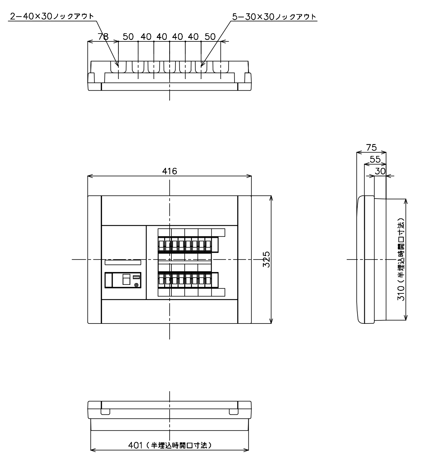 リミッタースペースなし スッキリパネルコンパクト21露出・半埋込両用形16+2 60A