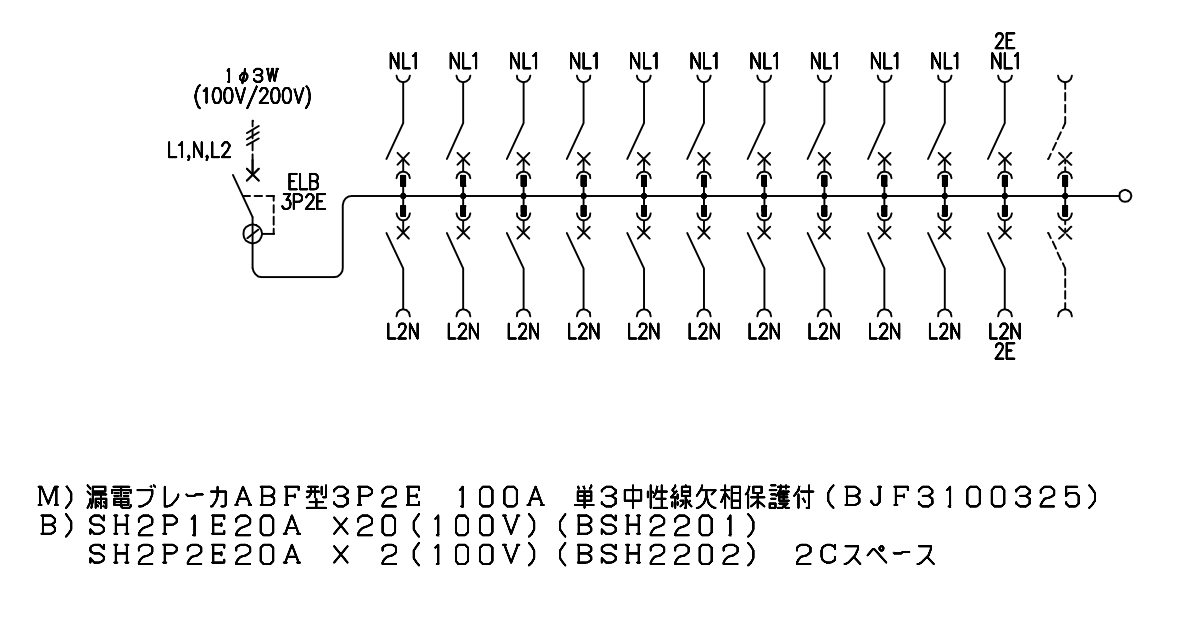 BQW810222 フタ無し分電盤 リミッタースペースなし 主幹ELB100A 回路数22 + 2