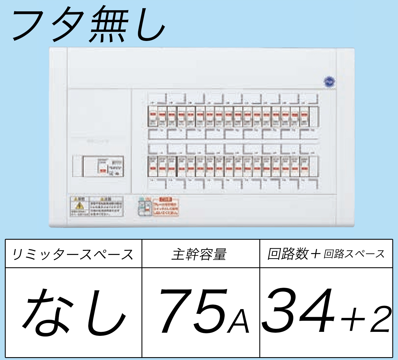 BQW87342 フタ無し分電盤 リミッタースペースなし 主幹ELB75A 回路数34 + 2