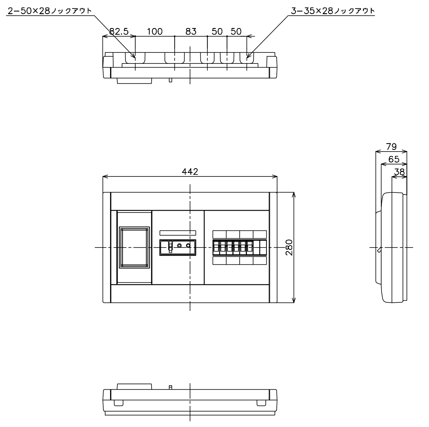 リミッタースペース付 スッキリパネルコンパクト21ヨコ1列露出形6+2 30A