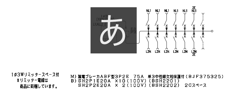 BQW37122 フタ無し分電盤 リミッタースペースあり 主幹ELB75A 回路数12 + 2