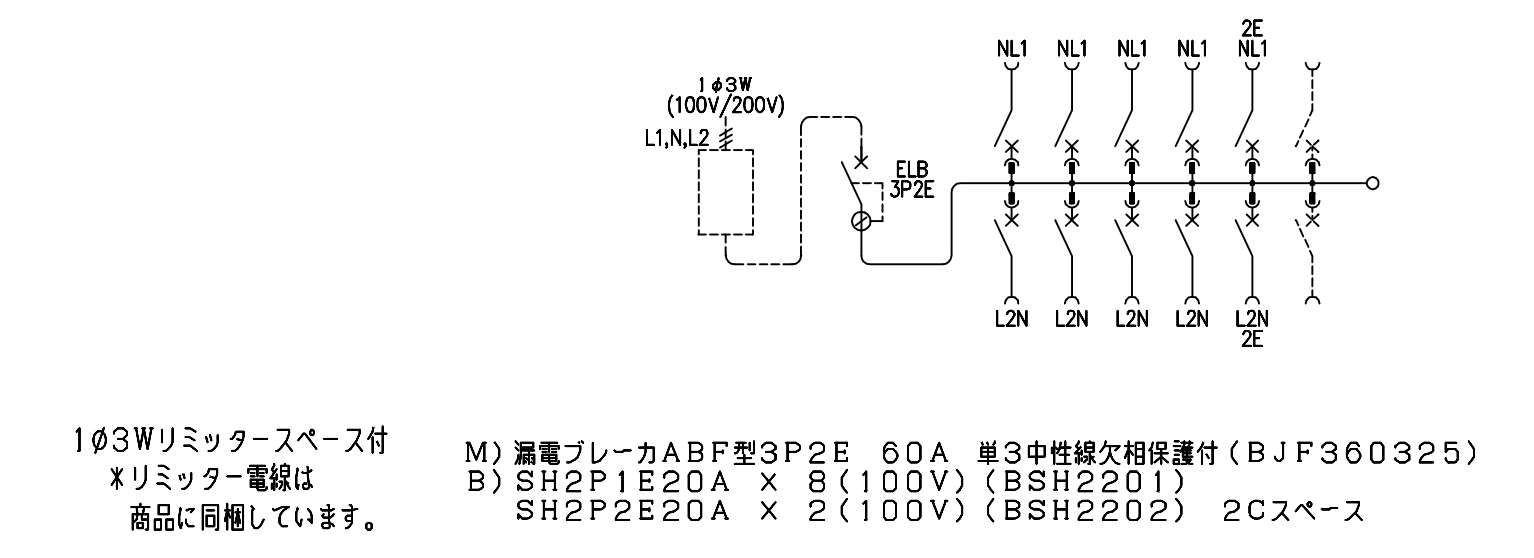 BQR36102 フタ付分電盤 単3 リミッタースペースあり 主幹ELB60A 回路数10 + 2