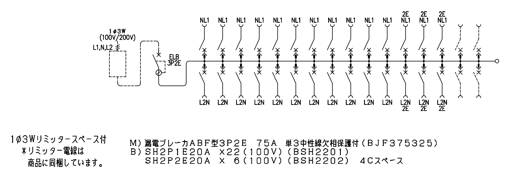 BQR37284 フタ付分電盤 単3 リミッタースペースあり 主幹ELB75A 回路数28 + 4