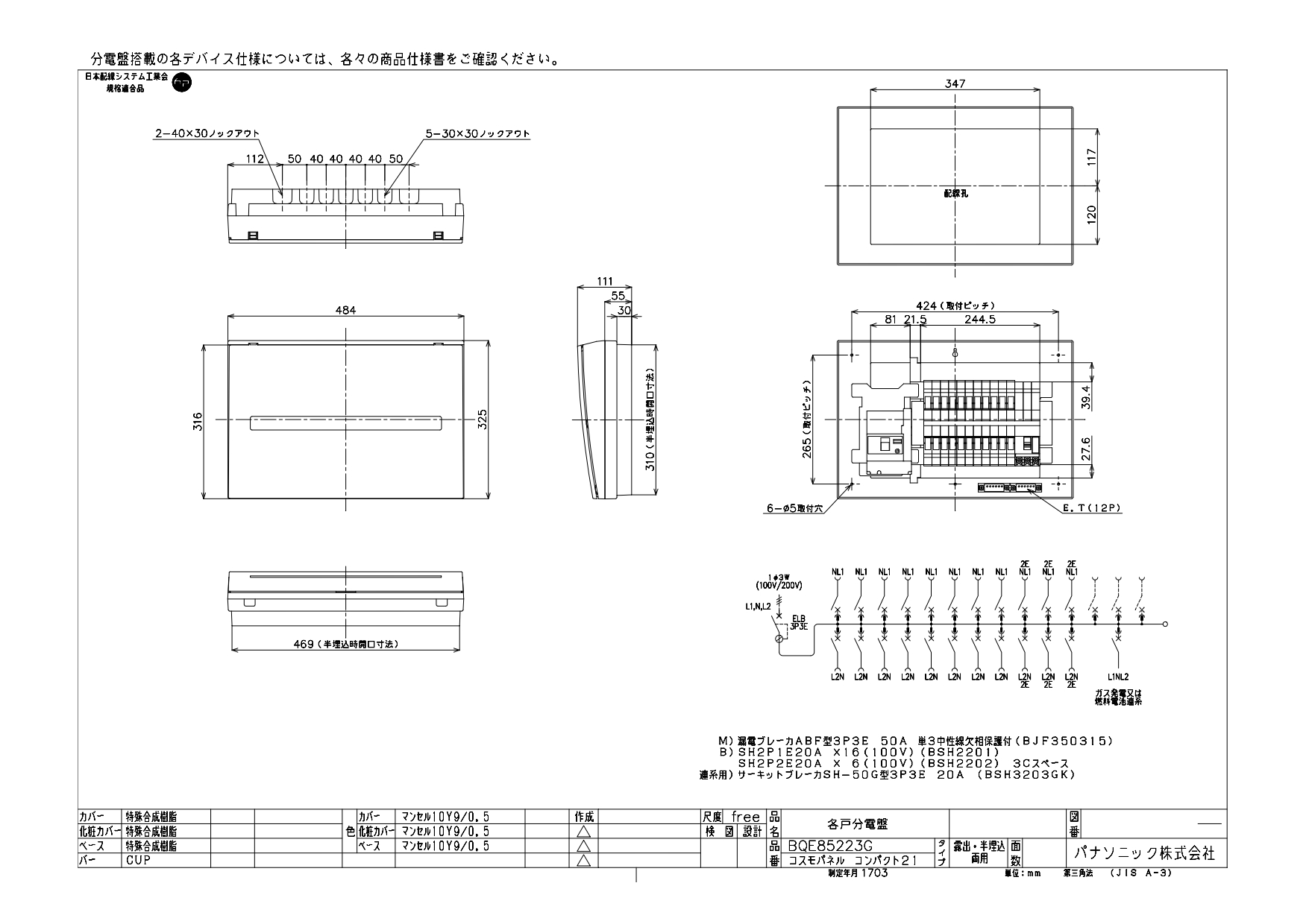 BQE85223G システム|ガス発電・給湯暖冷房システム対応分電盤 単3 リミッタースペースなし 主幹ELB50A 回路数22 + 3