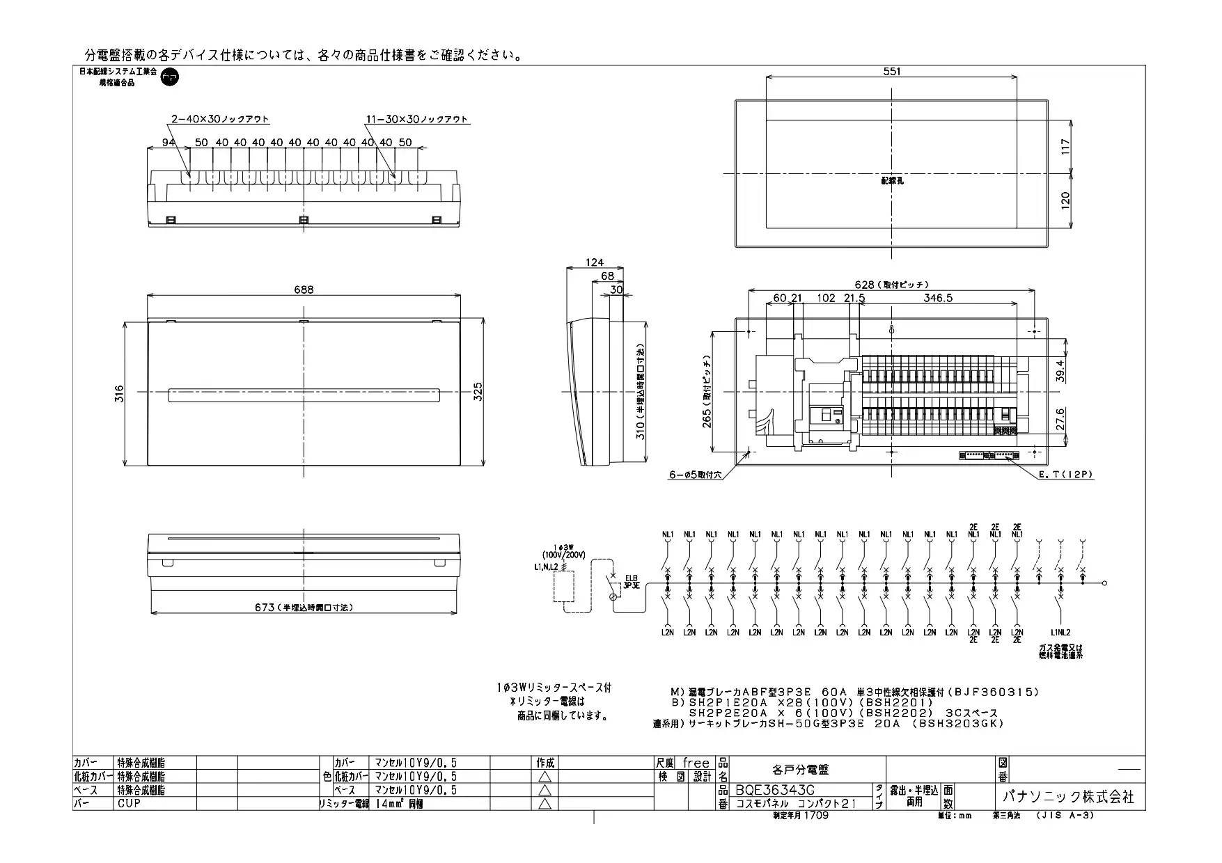 家庭用燃料電池システム/ガス発電・給湯暖冷房システム対応住宅分電盤 リミッタースペース付 露出・半埋込両用形 34+3 60A
