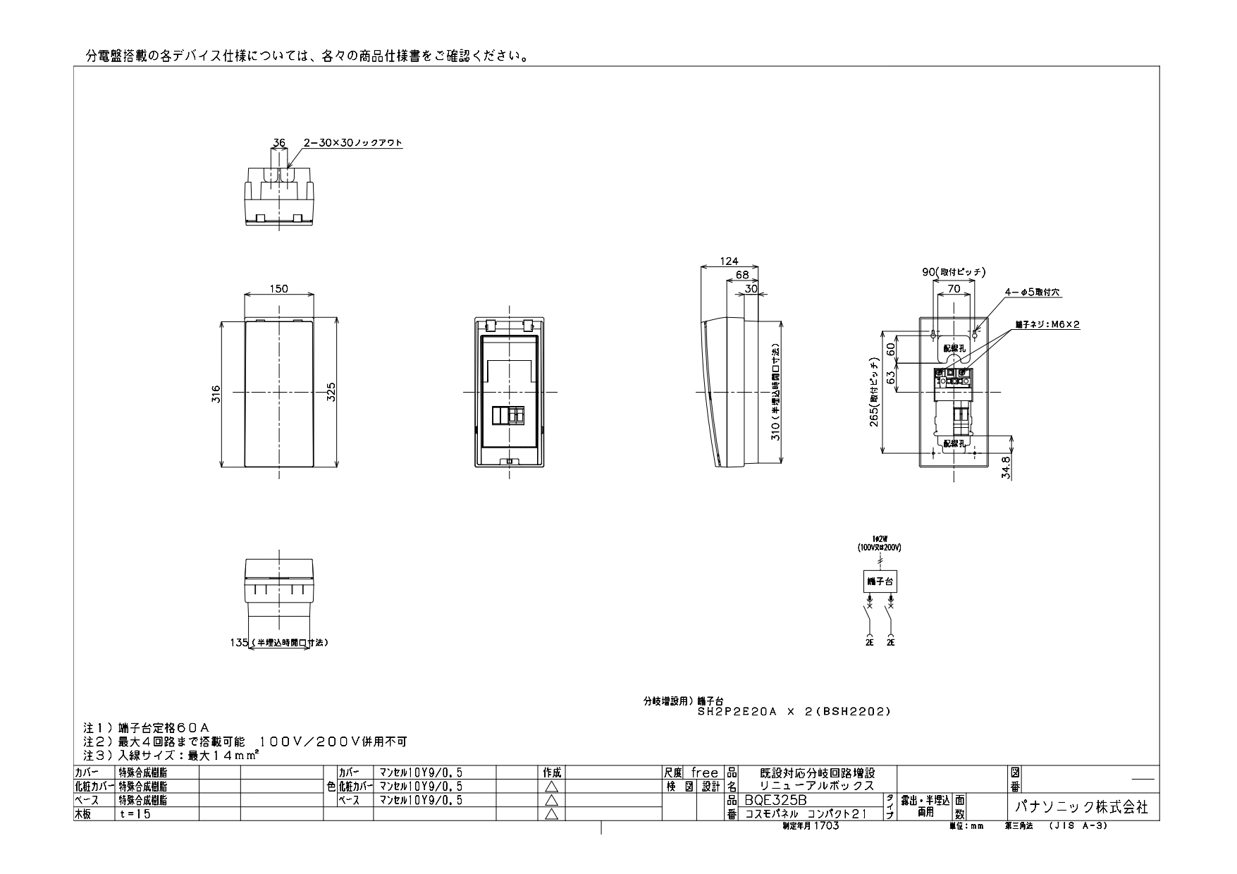 分岐回路増設リニューアルボックス 分岐2回路シリーズ・仕様:分岐回路増設対応リニューアルボックス