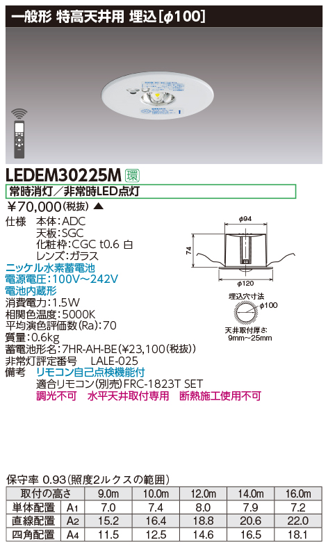 LEDEM30225M [受注品] LED非常灯特高天井用埋込専用形-16mφ100 ホワイト