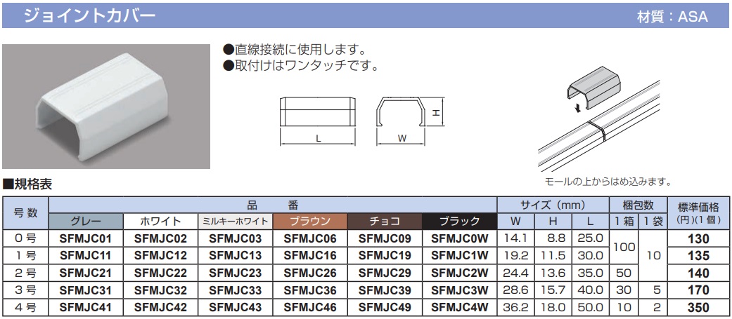 SFMJC1W ニュー・エフモール付属品-ジョイントカバー(1号・ブラック)