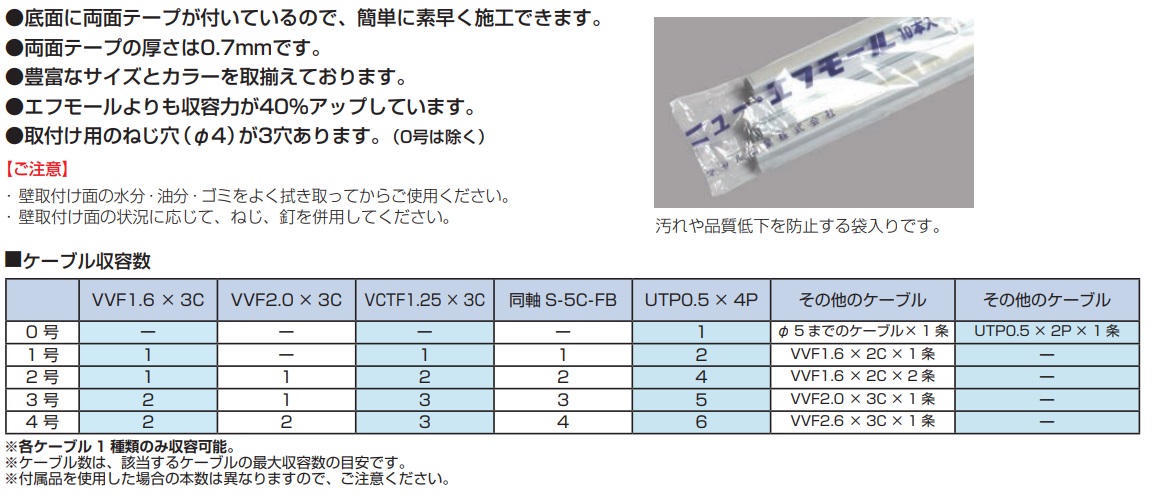 ※適合ケーブル条数は標準ケーブルの最大収容条数の目安です。