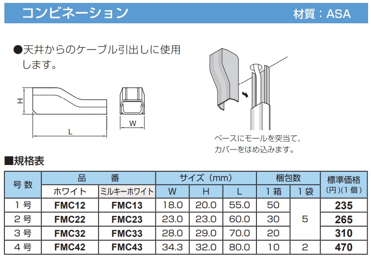 FMC33 エフモール付属品-コンビネーション(3号・ミルキーホワイト)