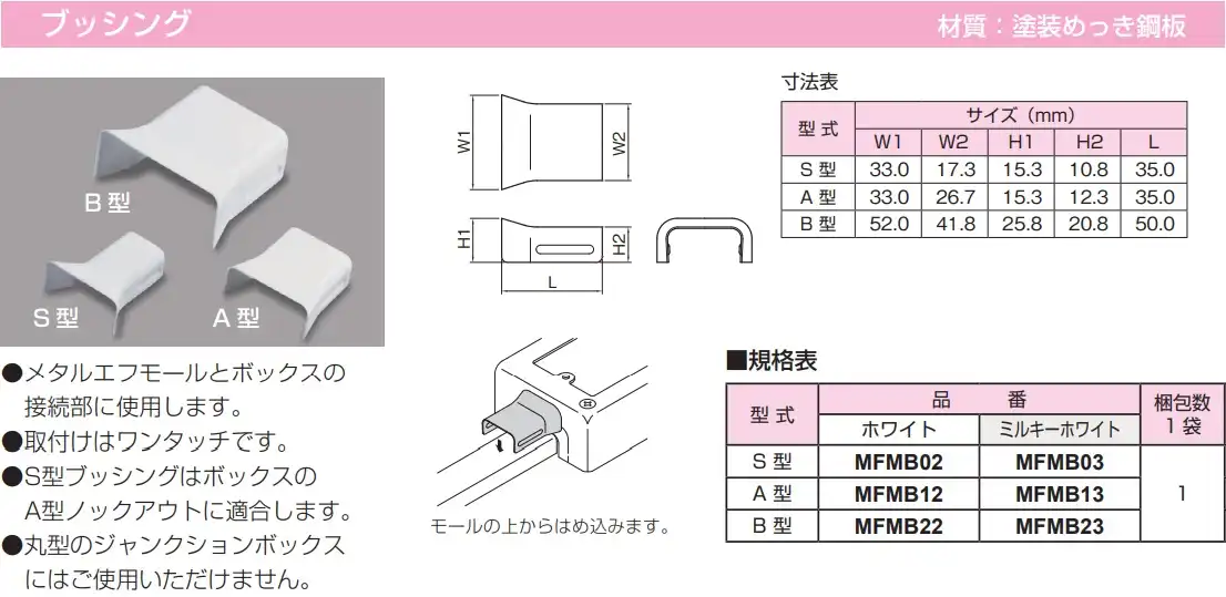 MFMB02 メタルエフモール付属品-ブッシング(S型)(ホワイト)