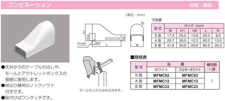 MFMC13 メタルエフモール付属品-コンビネーション(A型)(ミルキーホワイト)