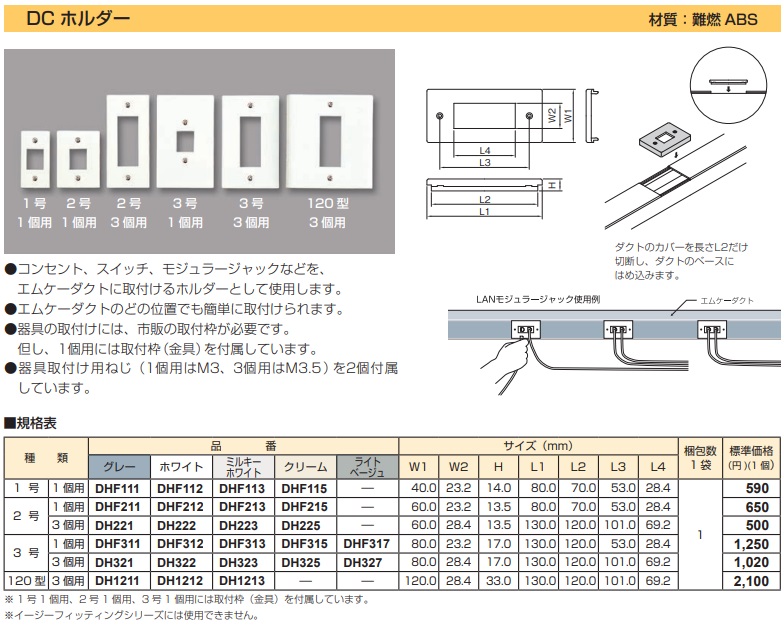 DH321 エムケーダクト付属品 DCホルダー(3号・2個用・グレー)