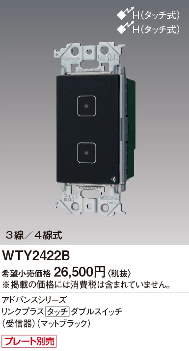 品番:WTY2422B品名:アドバンスシリーズリンクプラスタッチダブルスイッチ(受信器)(マットブラック)