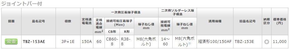 TBZ-153AE 【TBZ-A】ブレーカ用端子台(リペア端子形) 3P+1(E) 定格通電電流150A
