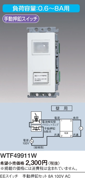 品番:WTF49911W品名:埋込住宅用EEスイッチ手動押釦(0.6~8A用)(ホワイト)