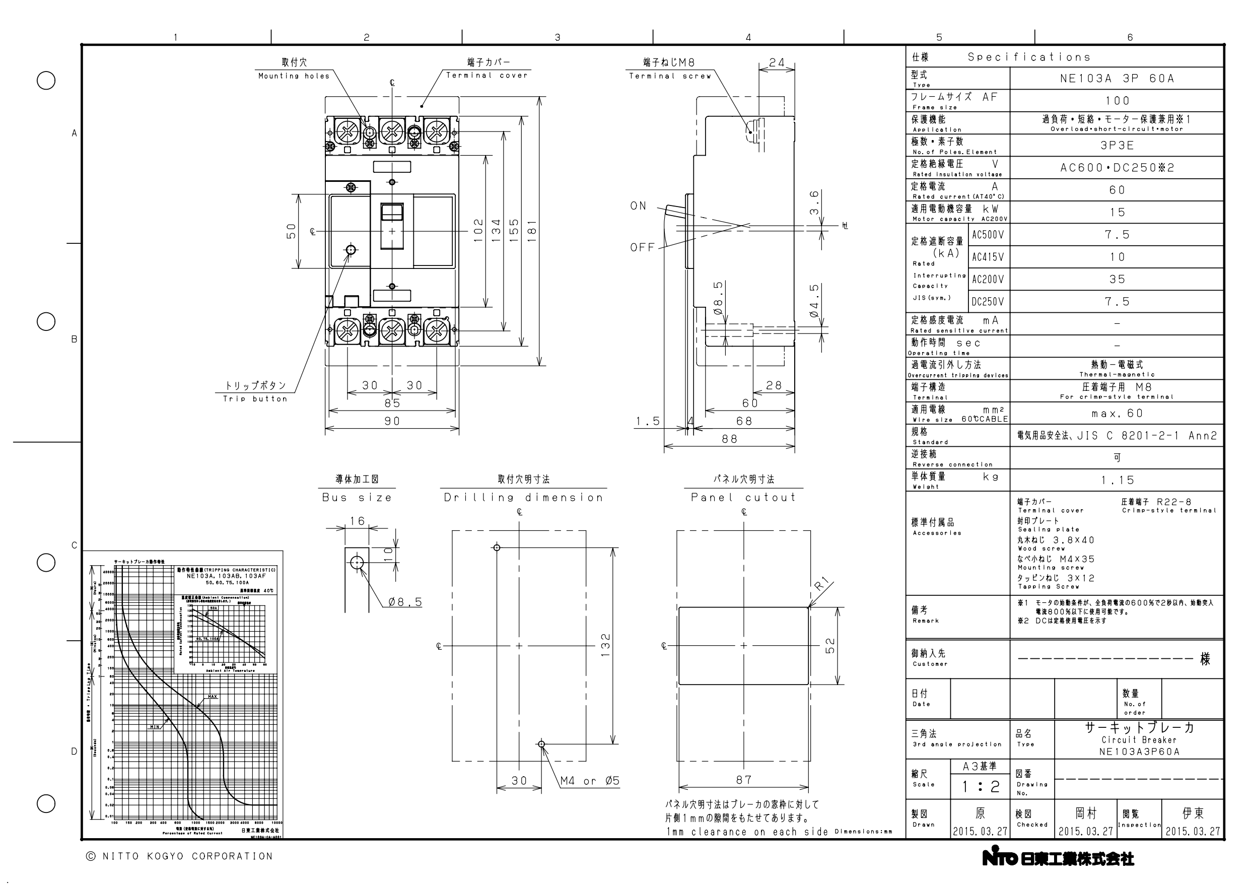 - 日東工業(NITO)製品 > ブレーカ > サーキットブレーカ > 【NE】経済・表面形