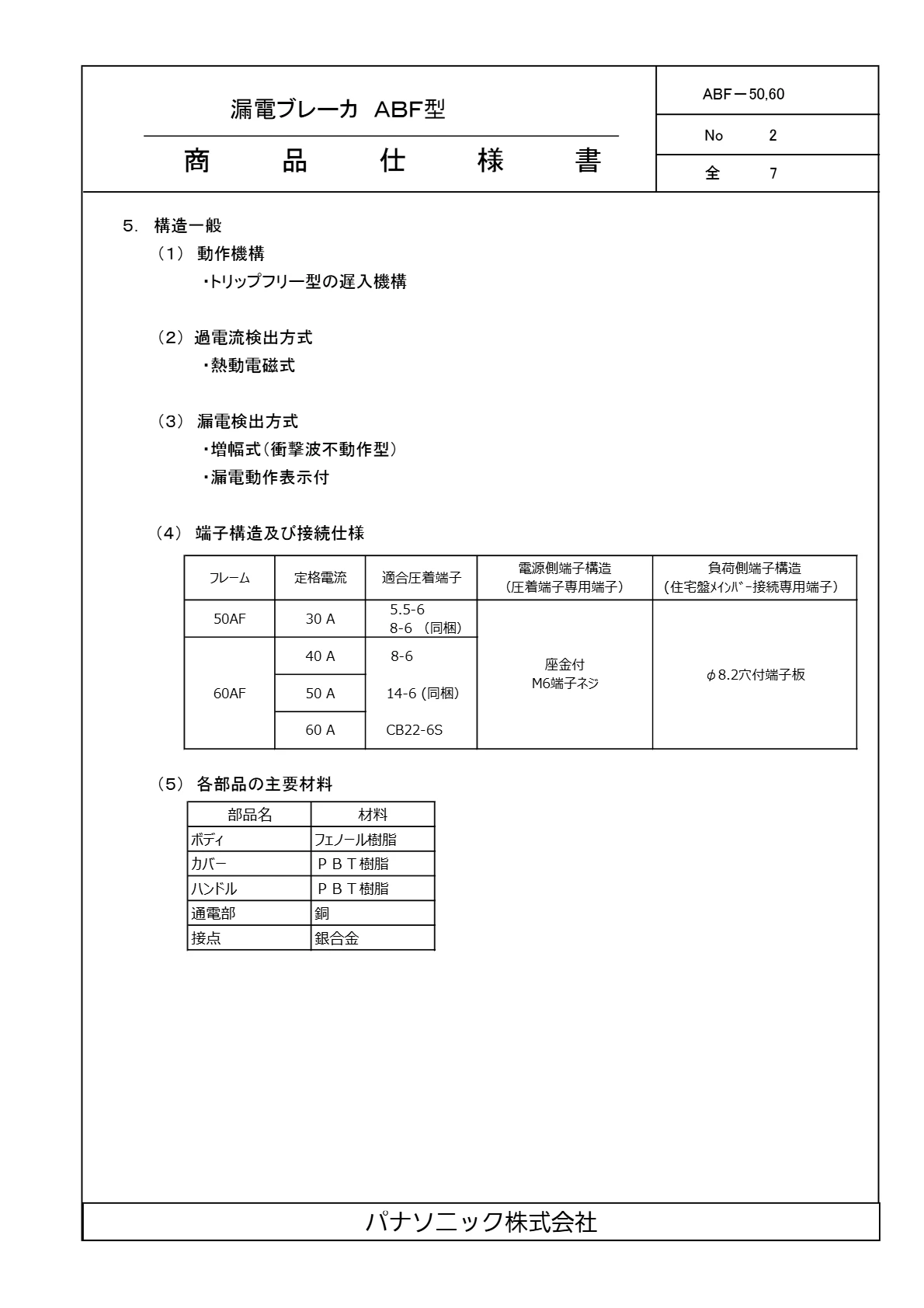 品名:漏電ブレーカー 主幹ABF型2P1E30A