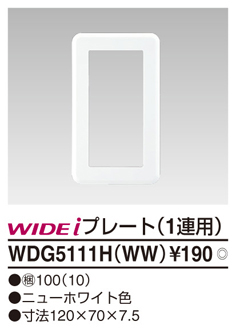 WDG5111H(WW) スイッチプレート1連用 簡易耐火 ニューホワイト