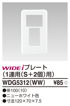 WDG5312(WW) スイッチ+コンセントプレート 1連用(S+2個用) ニューホワイト